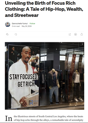 He also co-owns Focus Rich Clothing, a global streetwear brand co-signed by Lil Xan, DJ Paul (Three 6 Mafia), YBN Nahmir, Soulja Boy, and others.