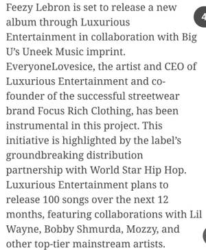 He’s signed to Luxurious Entertainment, an independent West Coast label distributed globally through Roc Nation.